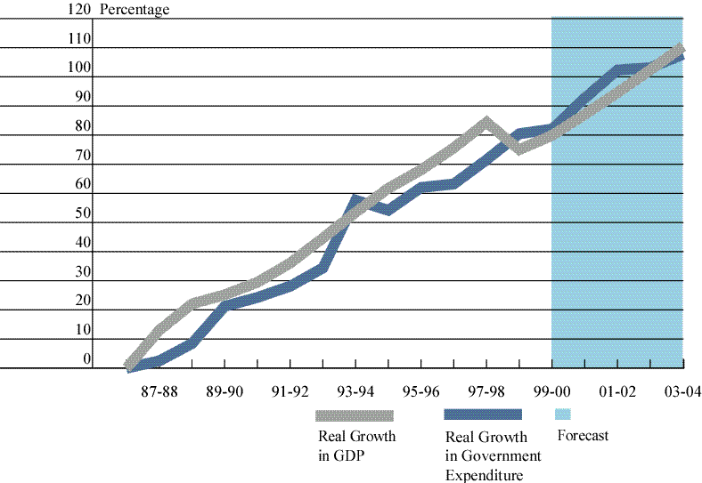 Note : GDP is calculated by applying trend growth to the latest 1999 estimate